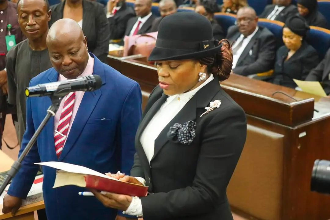 The Chief Justice of Nigeria, CJN, Olukayode Ariwoola on Wednesday, July 10 swore in newly appointed 22 Justices of the Court of Appeal and 12 Judges of the High Court of The Federal Capital Territory at the Supreme Court of Nigeria. The new Justices are Abdullahi Muhammad Liman from Nasarawa State; Abiodun Azeem Akinyemi from Ogun State; Olukayode Adegbola Adeniyi from Oyo State; Zainab Bage Abubakar from Kebbi State; Isaq Mohammed Sani from Kaduna State and Lateef Babajide Lawal-Akapo from Lagos State and Ngozika U. Okaisabor from Imo State respectively.Others are Donatus Nwaezuoke Okorowo from Enugu State; Ruqayat Oremei Ayoola from Kogi State; Polycarp Terna Kwahar from Benue State; Eberechi Suzzette Nyesom-Wike from Rivers State; Fadawa Umaru from Borno State; Oyewumi Oyejoju Oyebiola from Oyo State; Ntong Festus Ntong from Akwa Ibom State; Nehizena Idemudia Afolabi from Edo State; and Nnamdi Okwy Dimgba from Abia State. Others include Abdu Dogo from Federal Capital Territory, Abuja; Abdulazeez M. Anka from Zamfara State; Owibunkeonye Onwosi from Ebonyi State; Asmau Akanbi-Yusuf from Kwara State; Victoria Toochukwu Nwoye from Anambra State; and Enenche Eleojo from Kogi State.Nyesom Wike, the FCT minister could be seen smiling as he watched his wife, Eberechi Suzzette Nyesom-Wike, take the oath of office. The post Nyesom Wikes wife, others sworn in as Appeal Court Justices (photos) appeared first on www.adng.ng Get free adverts. An Ad search engine .